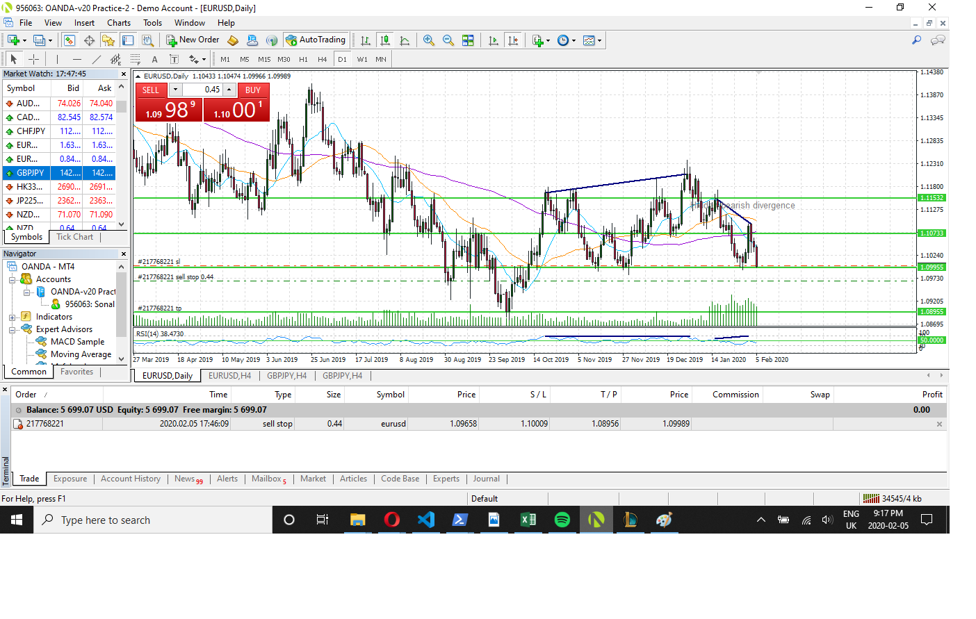 Sell Stop EURUSD 5th Feb